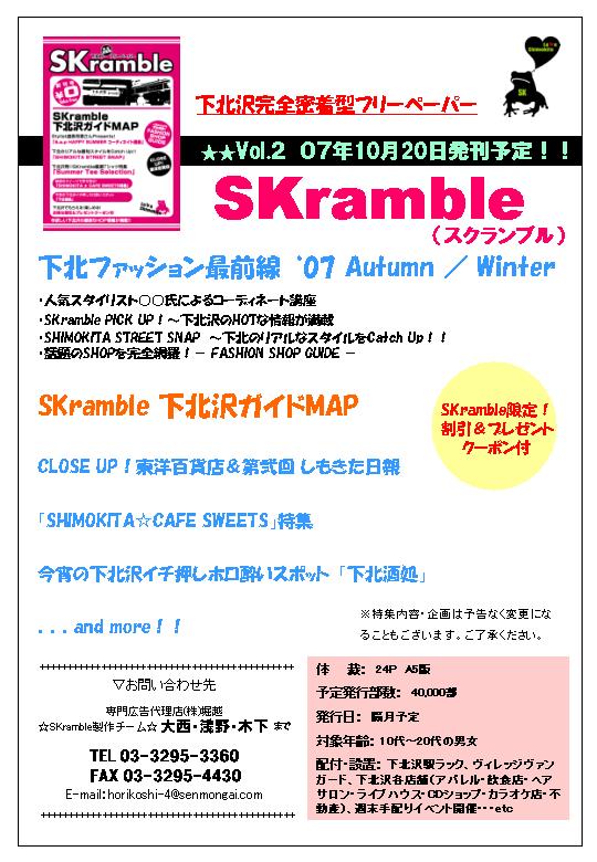 SKramble製作チームでは、新たにご参加頂ける下北のショップさんをお待ちしております!下北No.1のフリーペーパーを目指してますので、お力を貸して頂ければ幸いです。