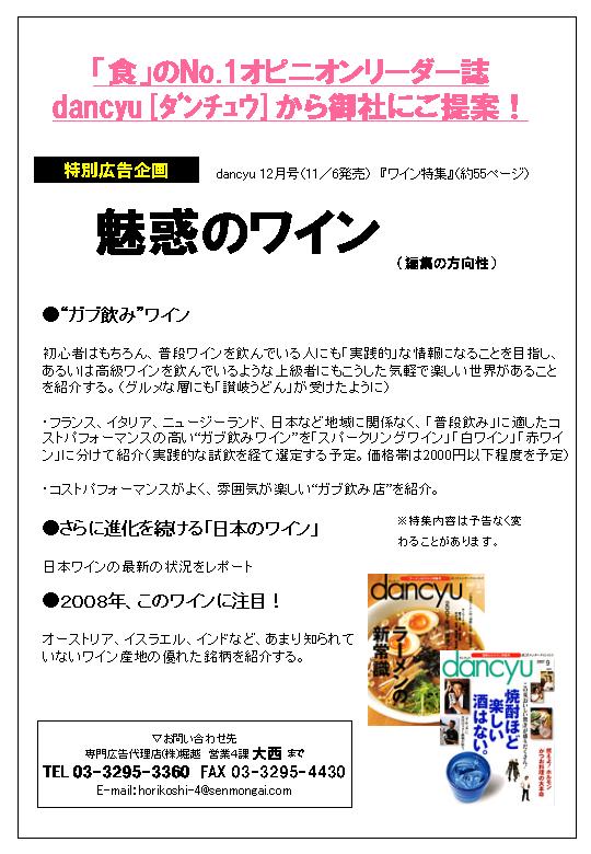 「食」のNo.1オピニオンリーダー誌"dancyu"[ダンチュウ]から御社にご提案!