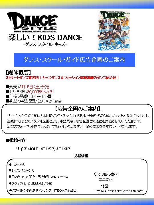 人気ダンス雑誌「DANCE STYLE」の別冊として、ストリートダンス業界初のキッズダンス&ファッション情報満載のダンス総合誌の発刊が決定しました!それに伴い、ダンススタジオ様向けのスタジオ紹介企画を実施します。
