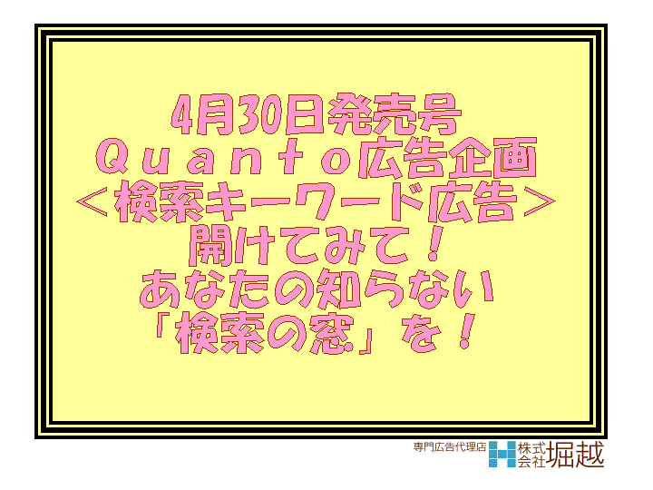 ご掲載料金などはご相談下さい。お問い合わせ先;03−3295−3360もしくは horikoshi-7@senmongai.co.jp まで。宜しくお願い致します。担当;荻原