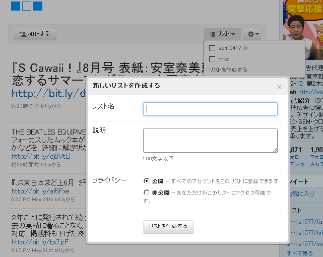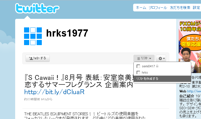 ちなみに、フォローして無くてもリストにだけ追加することもできるので、
